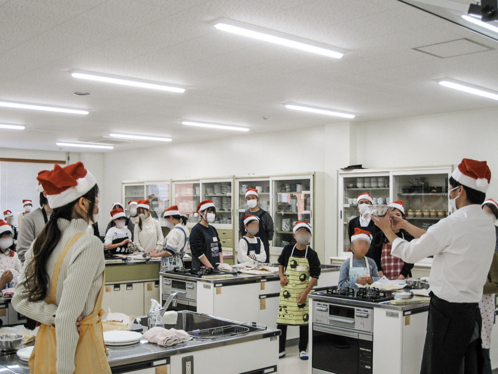 2025年12月13日(土)、宇部フロンティア大学短期大学部 食物栄養学科のご協力のもと、こどもの未来共創ワーキングチーム体験企画「わくわくクッキング クリスマスケーキを作ろう」を実施しました。クリスマスケーキ作りとクリスマスカード作りに加え、ミニクリスマス会も行いました。
