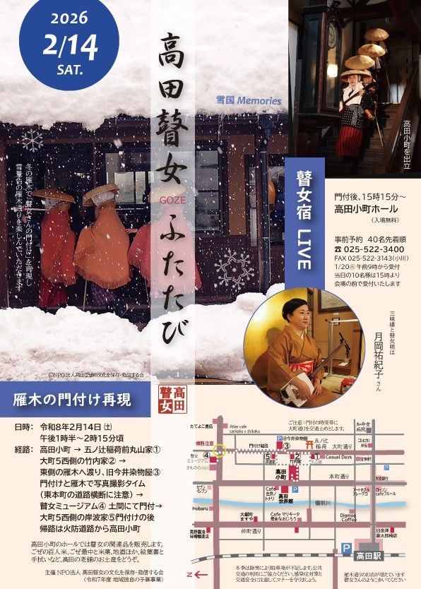 参加費:無料(「瞽女ミュージアム髙田」に入館される場合は入館料500円)