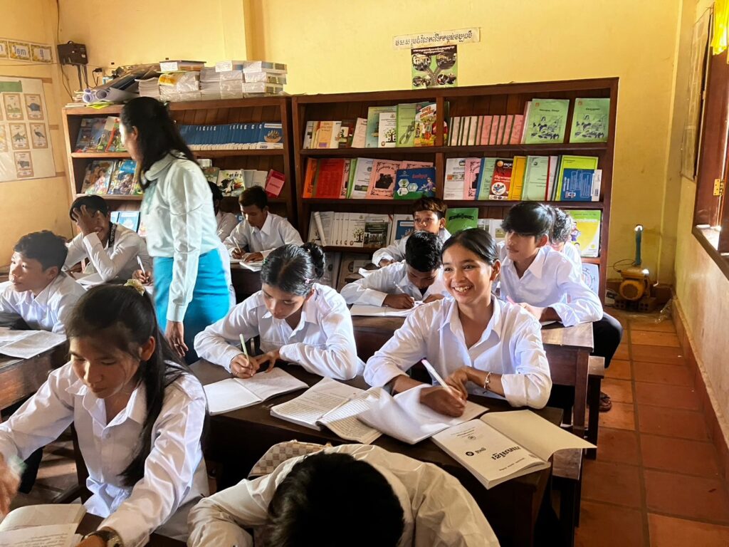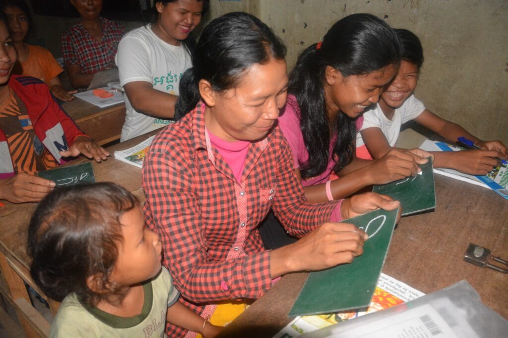 左:大人向けの識字クラスで学ぶ女性たち 右:中学校クラスで学ぶ子どもたち
