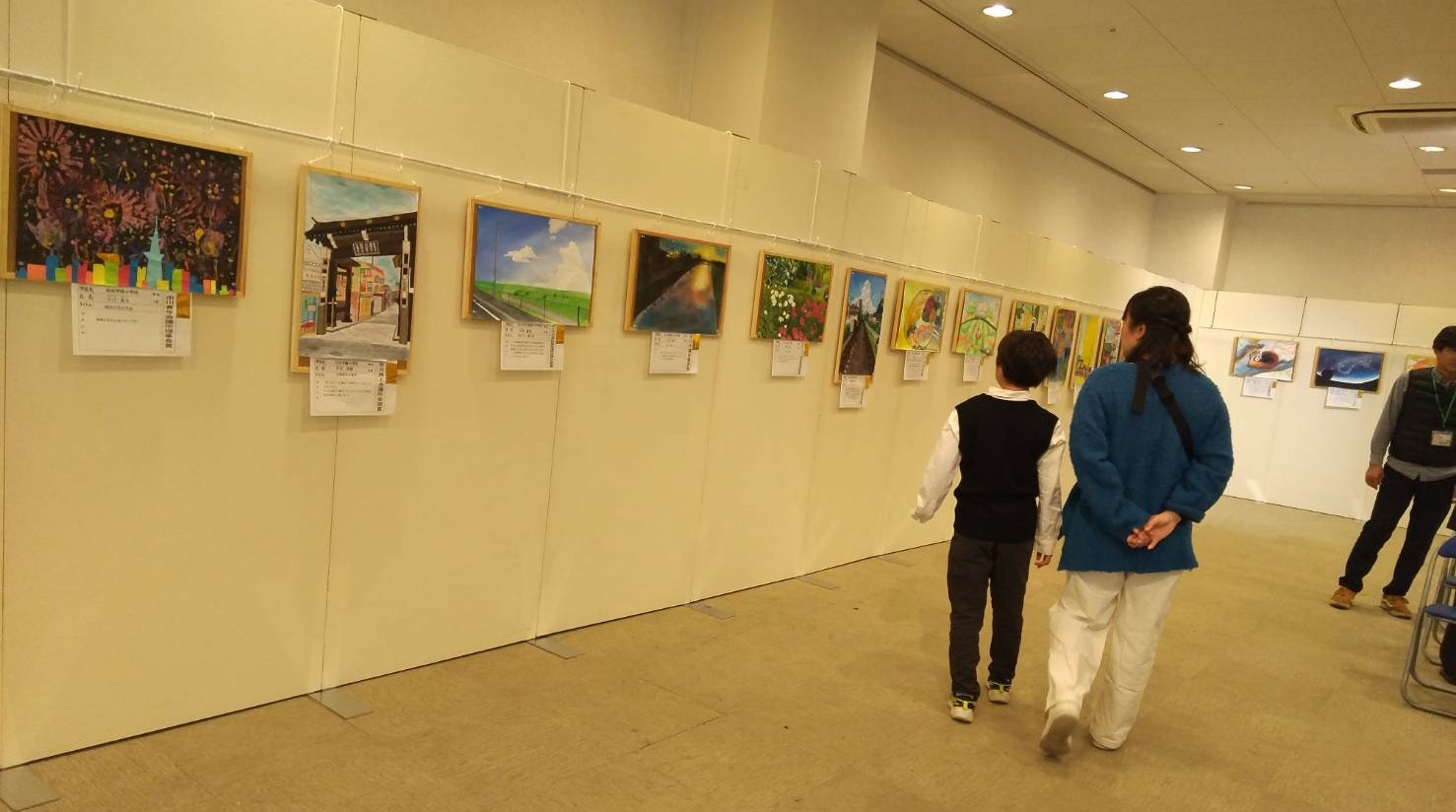 令和3年11月9日(火)〜19日(金)の間、市川市役所第一庁舎1階ファンクションルームにおいて、市内の小中学生の作品展示が行われると同時に、40周年記念として隣りのブースで楽山市の優秀作品が上映されました。