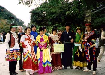 国際交流や国際協力をすすめている市内NGOが年に1回集まって開く祭典が晩秋の11月14日、高徳院鎌倉大仏殿境内で行われた。参集したのは16団体。 祭典は、鎌倉ユ協提供の世界民族衣装を着こなした手広中学校の生徒たちが居並ぶなか、佐藤孝雄高徳院ご住職の挨拶でスタート。 今回、鎌倉ユネスコはバザーで参加。 |