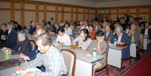 | 次いで、石田喬也理事と広瀬光世理事が議長団に選出され議事が進行されました。 2006年度事業報告が山田ミヤ子事務局長から、収支決算報告が小倉寛子会計担当から、監査報告が石渡好行理事からあって、満場の拍手で承認 されました。続いて2007年度事業計画案が内田洋子理事より、収支予算案が小倉寛子会計担当より報告され承認されました。 |