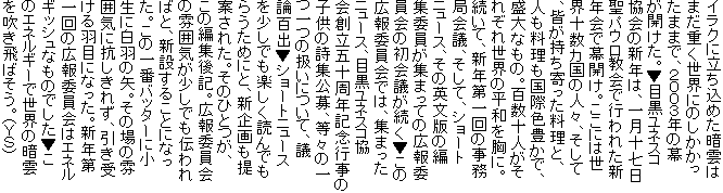 1/8交流活動委員会▼1/11青年ミーティング▼1/12成人の日の集い会場にて世界寺子屋募金活動▼1/15関東ブロック実行委員会▼1/16新年会準備▼1/17新年会▼1/20都ユ連理事会▼1/26理事会▼1/30広報委員会★毎水曜日13〜15pm事務局会議★会員研修語学講座 英/4 仏/3 中/1 伊/1韓/1各講座毎週一回★委託語学 中/1 西/1★日本語教