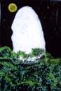 海を横目にゴトゴト揺れながらのんびりと走る江ノ電。遠くに見える稲村が崎。鎌倉らしい雰囲気を漂わせています。はっきりした色づかいは夏の目映い陽ざしを感じさせ、道路や江ノ電の形は透視図法を用いて画面に奥行きを出しています。全体として明るく、伸び伸びとした画面をつくっています。題名のようにいつまでも見ていたい気持にさせてくれます。