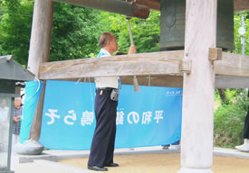 子どもの教育が戦争や紛争によって損なわれてはならない…との平和への願いを込めて、三田市小野にある聖徳寺で三田ユネスコ協会が参加者約40名と共に一人ひとり鐘をつきました。