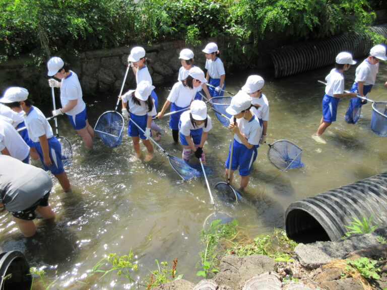 鴨川、高瀬川という京都を代表する自然と児童が触れ合う。