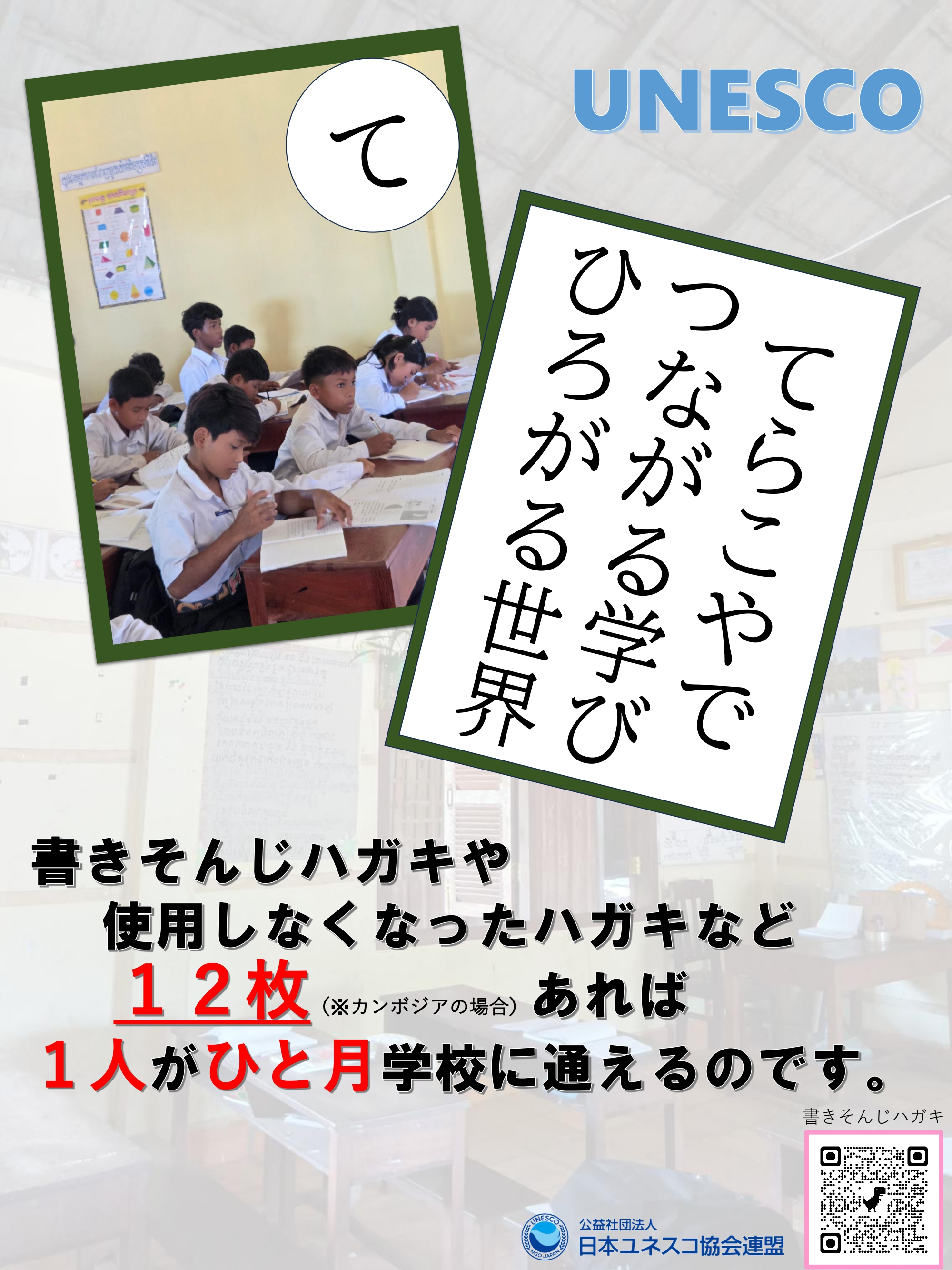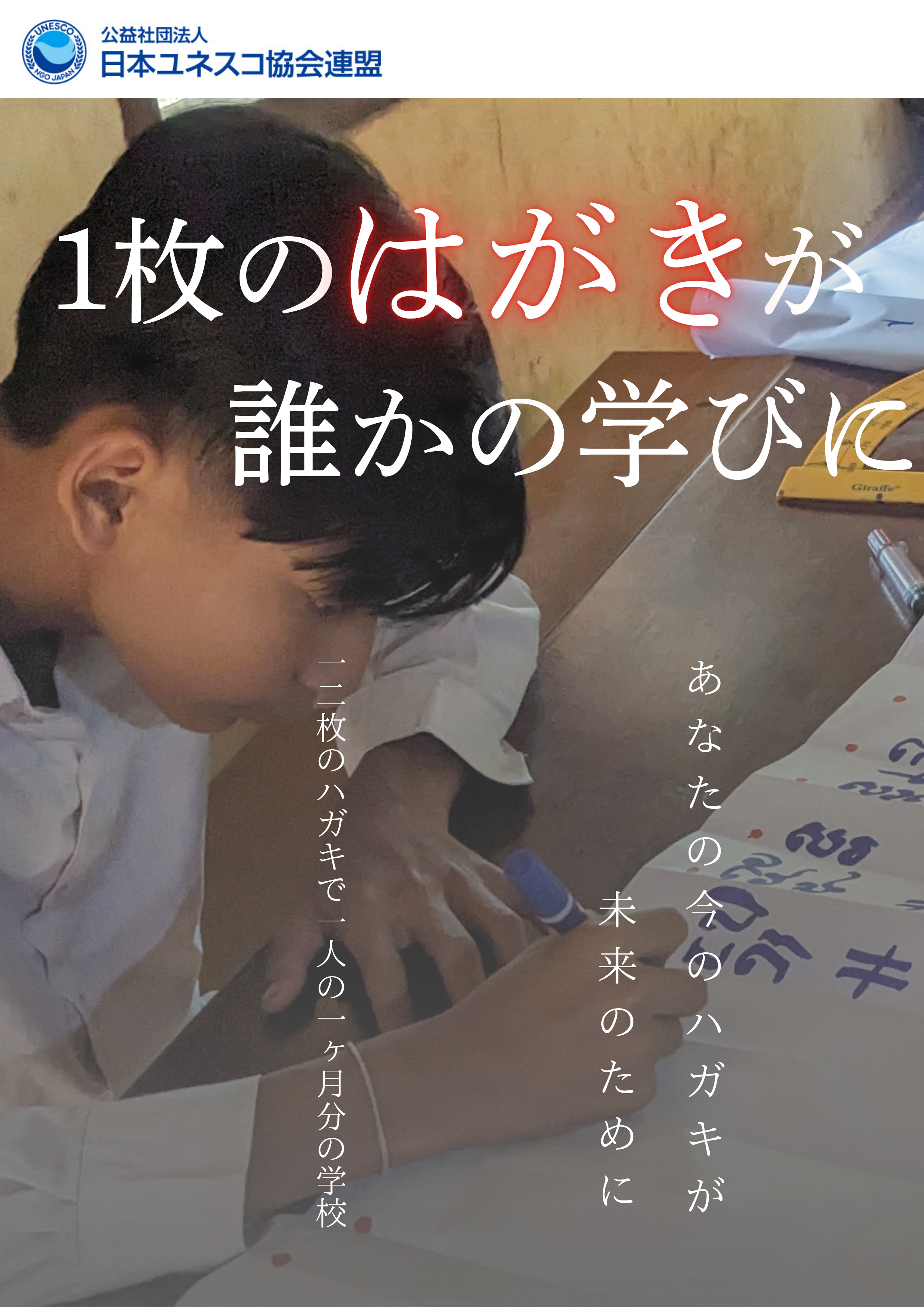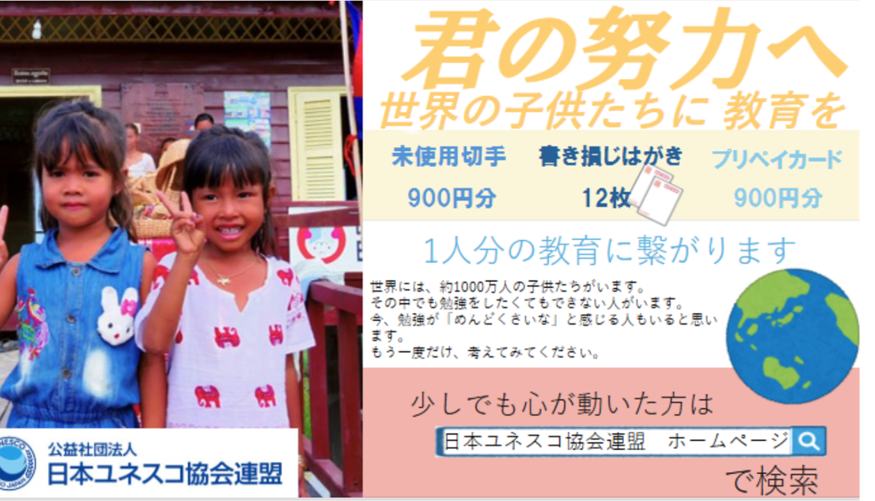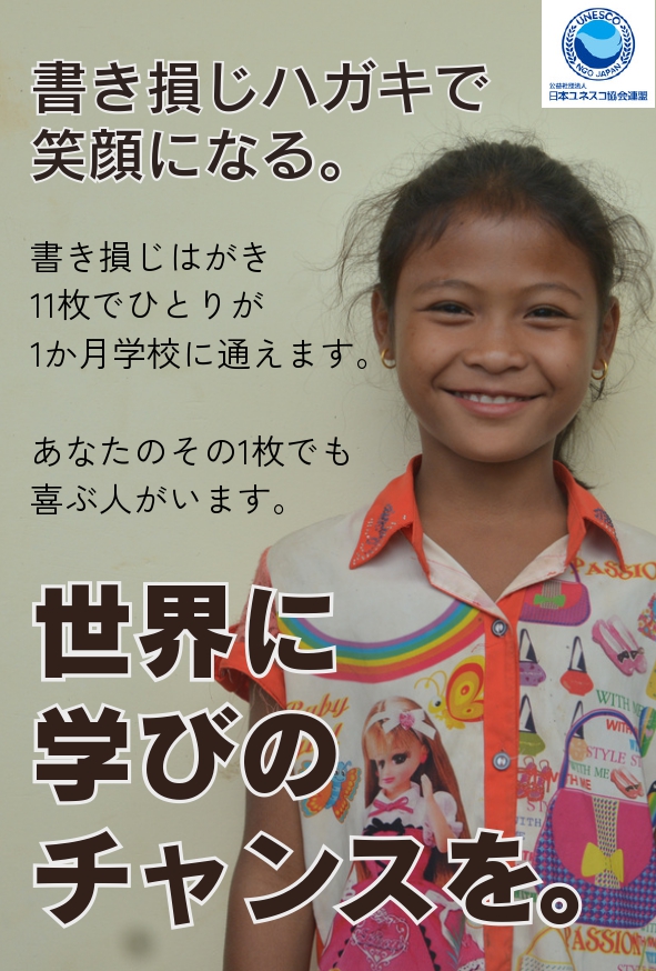 参加校の子どもたちが、途上国での教育活動を支援するために、書きそんじハガキ回収を目的としたリーフレットを作成しました。