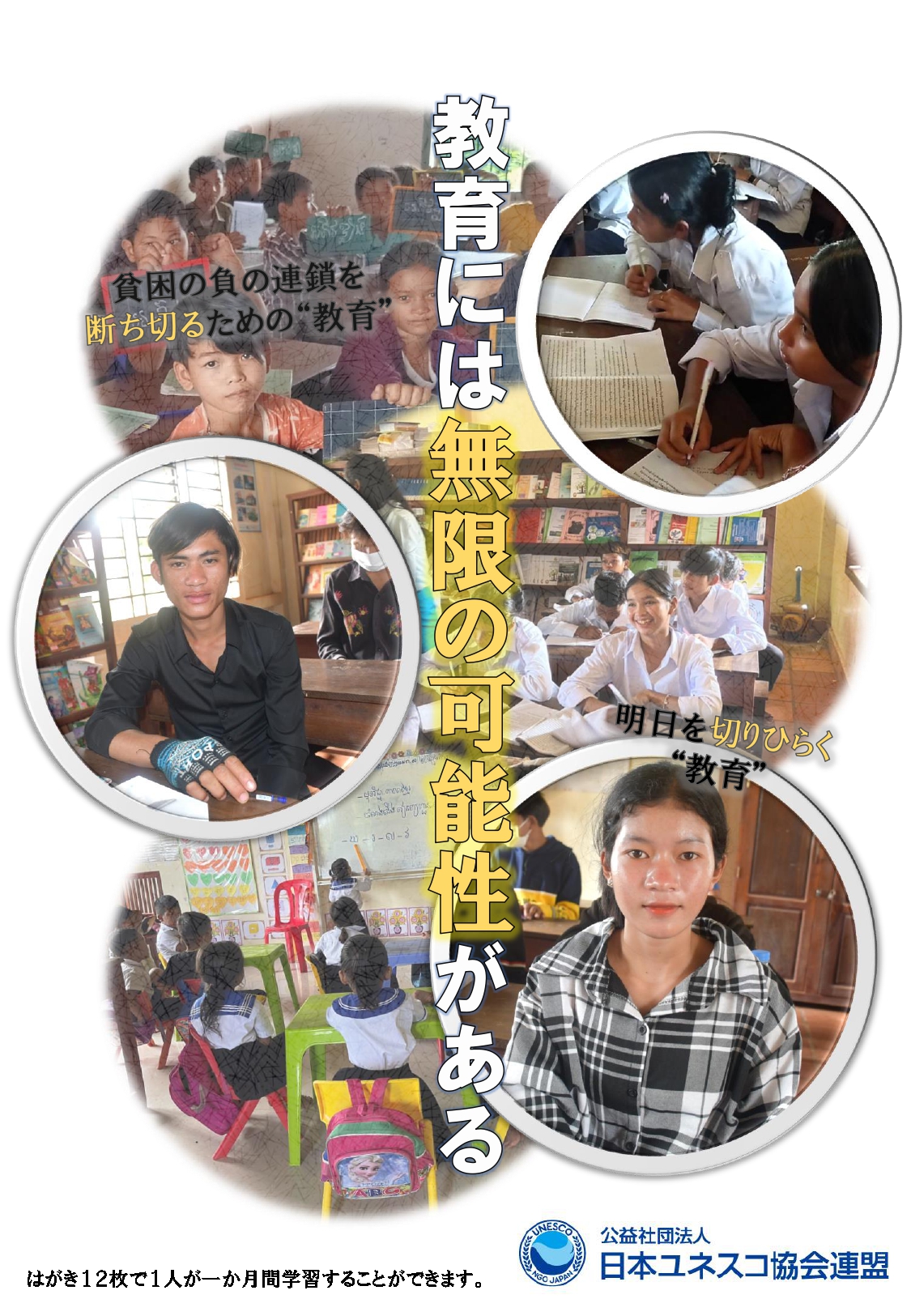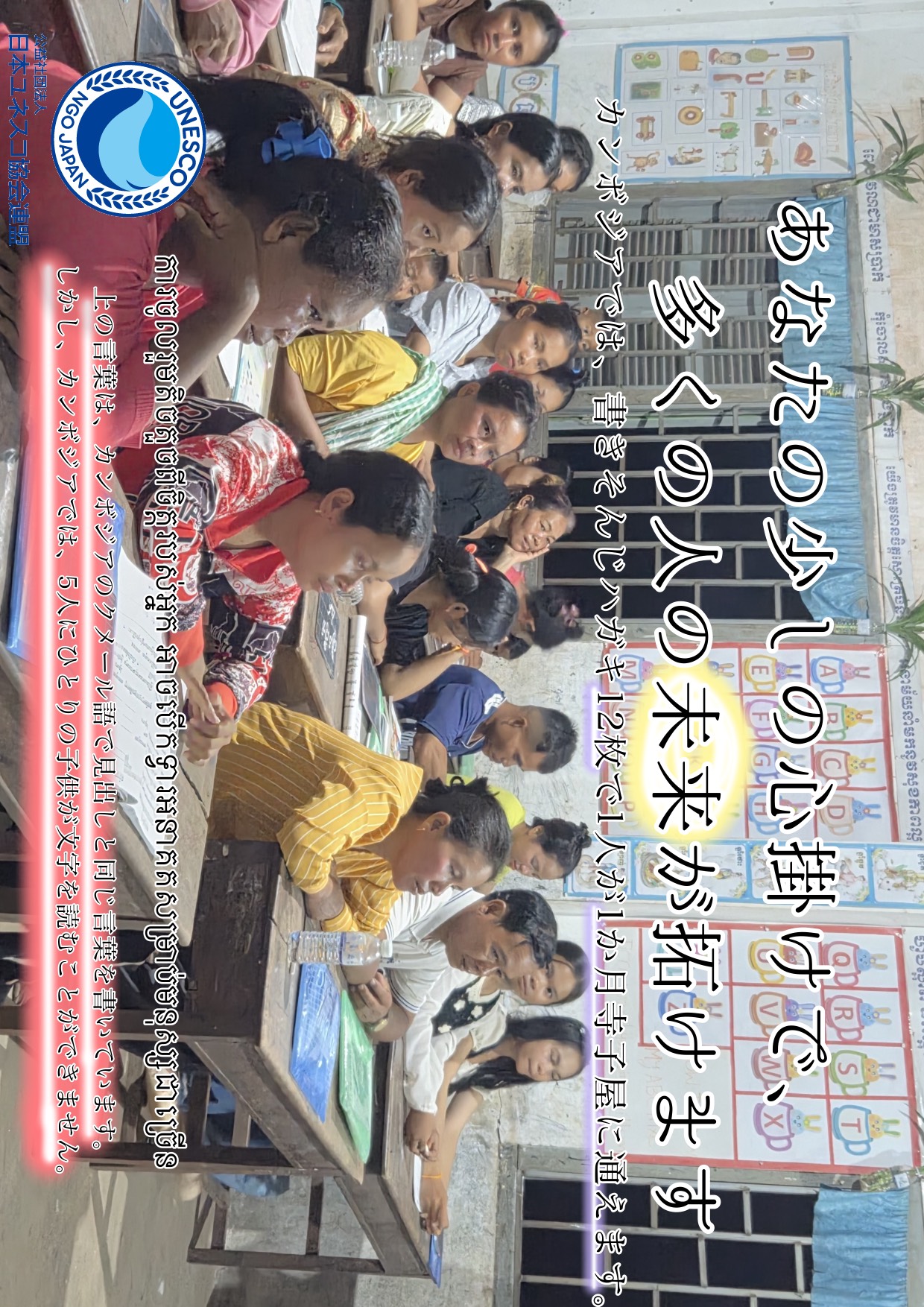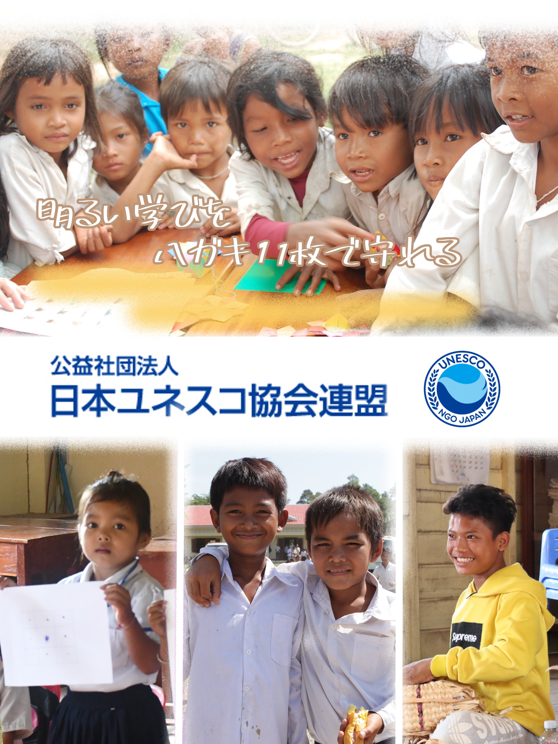 参加校の子どもたちが、途上国での教育活動を支援するために、書きそんじハガキ回収を目的としたリーフレットを作成しました。